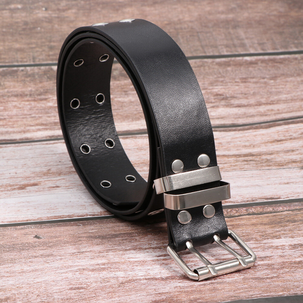 Punk Style Belt Double Rows Holes Waist Belt for Women Man (Black)